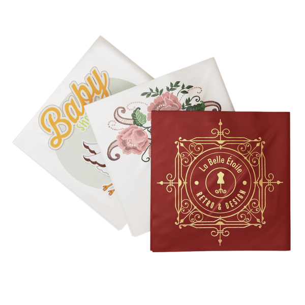 If you’re interested in enhancing the personalization of your event, consider our cloth beverage napkins. While they already feature an elegant design, you have the option to choose from a variety of unique printing styles to truly make your event stand out.