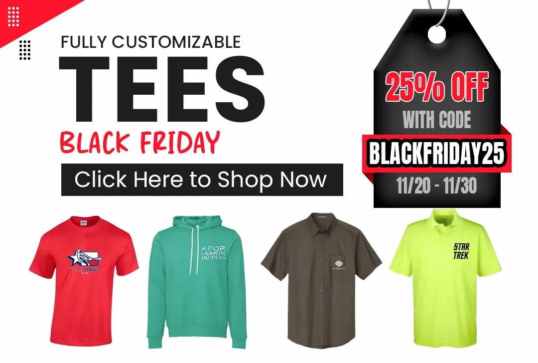 Your total cost primarily depends on the quantity of ordered customized T-shirts, as well as their styles, sizes, and print positions. A “standard” custom logo T-shirt starts at $29.98. From there, you have a choice. Order more custom T-shirts and pay less per shirt. Or, play around with our custom T-shirt designs (e.g., add a logo on both sides or make the T-shirt reversible), and make your T-shirt a bit more expensive (and significantly more unique!).