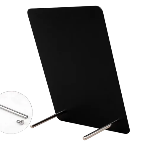 A Magnetic Desk Display is a sleek and modern way to showcase signage on a desk or tabletop. It is made of transparent metal material; this display offers a clear view of the Attached sign or label while providing a clean and professional appearance. Aside from attaching inserts, it is possible as well to write down in this desk display using materials like chalk for personalized branding and easy updates.