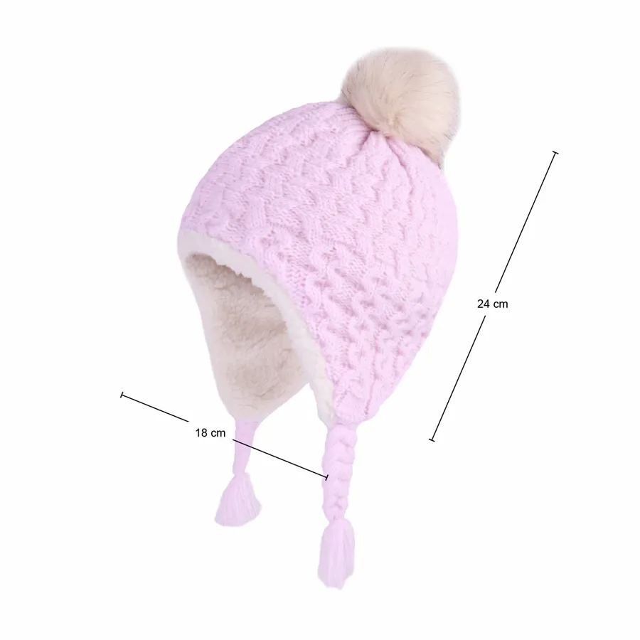 - Cutesy Pom Acrylic Kid Beanies with Earflaps